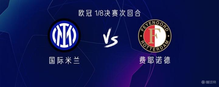 北京时间3月12日4:00,欧冠1/8决赛次回合,国际米兰主场对阵费耶诺德,赛前双方首发公布。