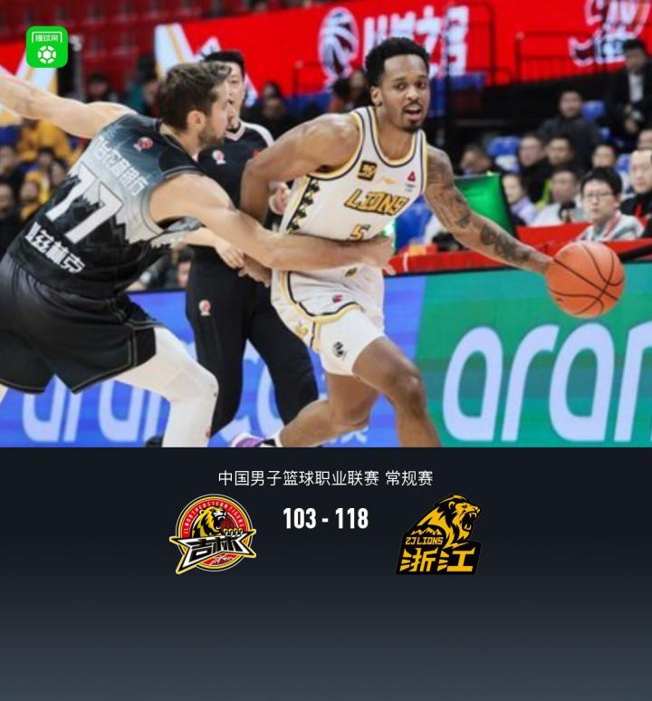 第四节吉林多米尼克-琼斯拿下7分,广厦朱俊龙拿下5分,最终吉林103-118不敌广厦