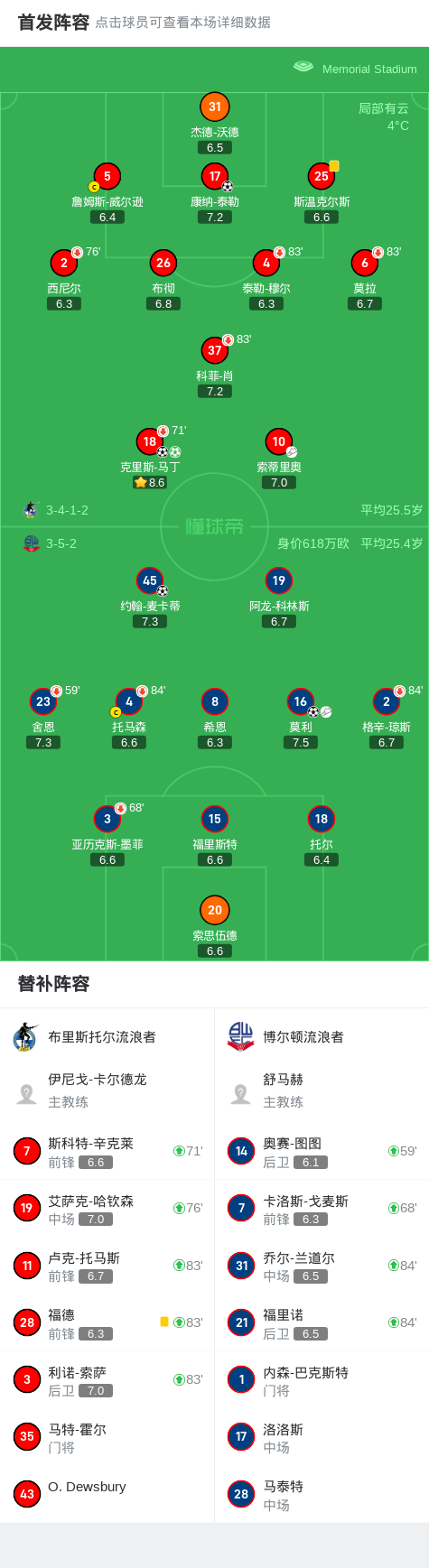 第70分钟,博尔顿流浪者球员莫利助攻约翰-麦卡蒂打入一球。