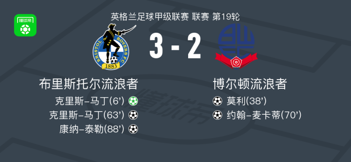 布里斯托尔流浪者3-2博尔顿,克里斯-马丁双响,康纳-泰勒建功