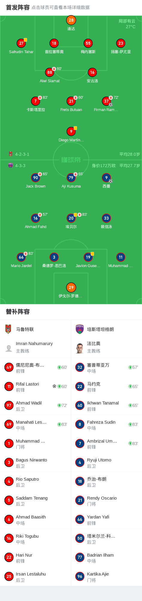 马鲁特联2-1培斯塔坦格朗,Rifal Lastori、Firman Ramadhan破门