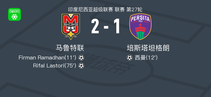 北京时间3月12日,印度尼西亚超级联赛第27轮,马鲁特联坐镇主场迎战培斯塔坦格朗。比赛开始后,双方迅速进入状态,马鲁特联由Firman Ramadhan率先取得进球,但培斯塔坦格朗很快还以颜色,西曼的破门帮助球队将比分扳平。随着比赛的推进,马鲁特联在进攻端持续施压,并最终由Rifal Lastori完成致命一击,锁定胜局。全场比赛结束,马鲁特联以2-1战胜培斯塔坦格朗,成功收获三分。