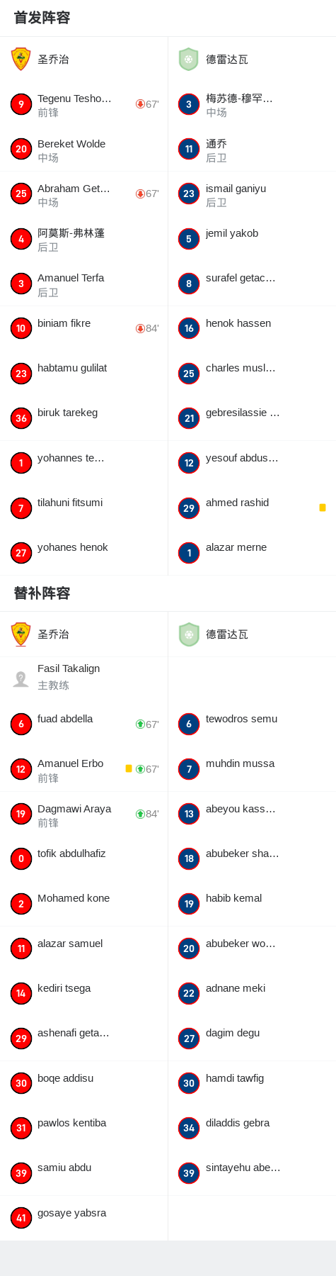圣乔治0-0德雷达瓦,双方互有攻守战报bot @懂球帝2025-03-13 00:56在北京时间3月12日进行的埃塞俄比亚超级联赛第22轮中,圣乔治坐镇主场迎战德雷达瓦。尽管双方在比赛中都创造了一些机会,但均未能打破僵局。最终,两队以0-0握手言和。点击查看本场比赛详细数据>> 球队阵容 技术统计 展开更多
