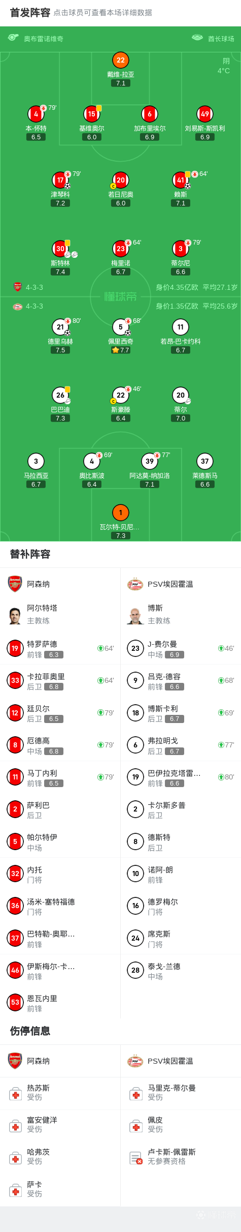 阿森纳总比分9-3埃因霍温晋级,斯特林助攻梅开二度
