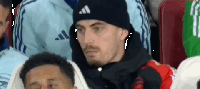 第26分钟,因伤无法出场的哈弗茨出现在看台,悠闲地嚼着口香糖