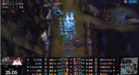 第10分钟,Zeka塞拉斯TP及时支援,蔚丝血逃生。
