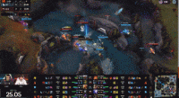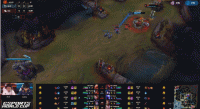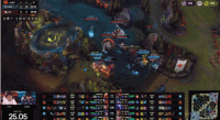 第19分钟,双方在小龙处混战,KC方Canna塞恩、Yike瑟庄妮与Targamas洛关键技能全空,HLE稳稳拿下小龙并打出1换3。