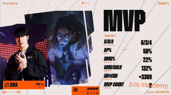 第3分钟,Zeka换血成功,升4后配合电刑对位单杀Vladi岩雀。