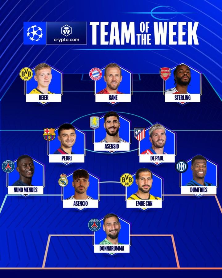 欧足联官方公布了本周的欧冠最佳阵容,传射建功的哈里-凯恩领衔,点球大战中两度扑点的多纳鲁马在列。