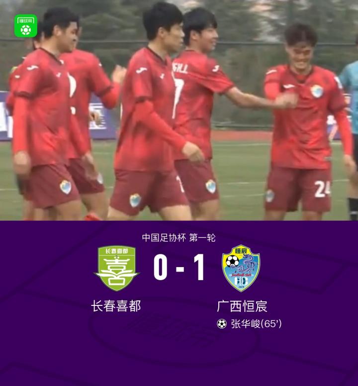 广西恒宸1-0长春喜都,张华峻助球队取胜