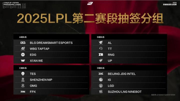 LPL第二赛段抽签:BLG再遇WBG,TES与NIP同组,IG对碰JDG