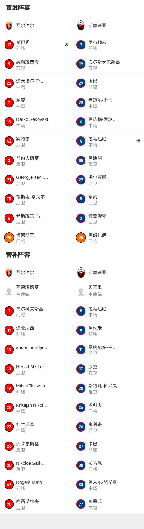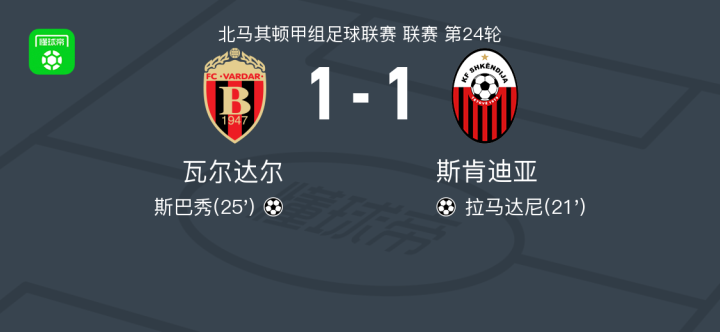 瓦尔达尔1-1斯肯迪亚,拉马达尼打破僵局,斯巴秀扳平