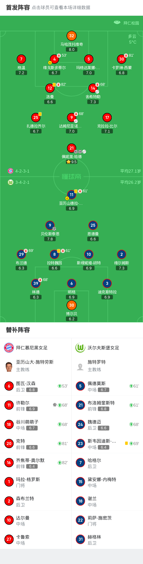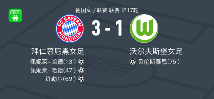 拜仁慕尼黑女足3-1沃尔夫斯堡女足,佩妮莱-哈德梅开二度,许勒尔建功