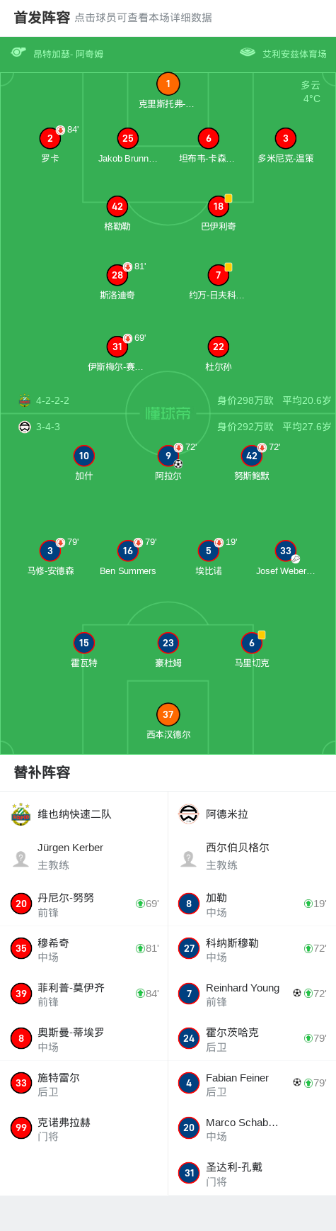 第89分钟,阿德米拉球员科纳斯穆勒助攻Reinhard Young打入一球。