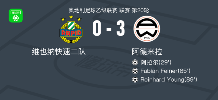 北京时间3月15日,奥地利足球乙级联赛第20轮展开争夺,维也纳快速二队坐镇主场迎战阿德米拉。比赛中,阿德米拉展现了出色的进攻能力,阿拉尔率先取得进球为球队打开胜利之门,随后Fabian Feiner再下一城扩大领先优势,Reinhard Young锦上添花锁定胜局。最终,阿德米拉客场以3-0的比分战胜维也纳快速二队,全取三分。