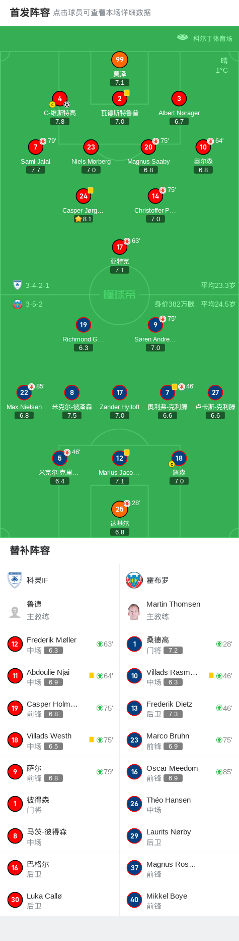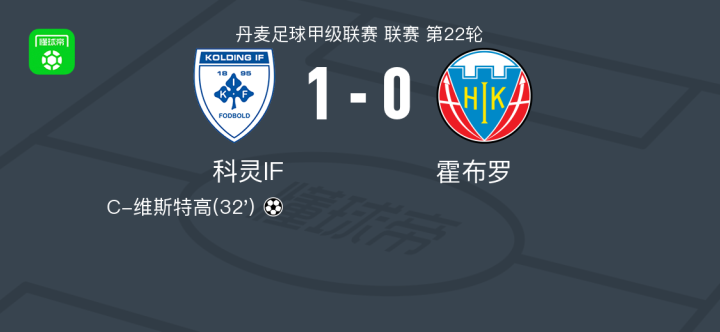 科灵IF1-0霍布罗,C-维斯特高一锤定音战报bot @懂球帝2025-03-15 04:01北京时间3月15日,丹麦足球甲级联赛第22轮,科灵IF坐镇主场迎战霍布罗。比赛中,科灵IF凭借C-维斯特高的关键进球取得领先。最终,科灵IF以1-0的比分战胜霍布罗,全取三分。点击查看本场比赛详细数据>>点击查看丹甲完整积分榜>>精彩瞬间第32分钟,科灵IF球员C-维斯特高打入一球。 球队阵容 技术统计 展开更多