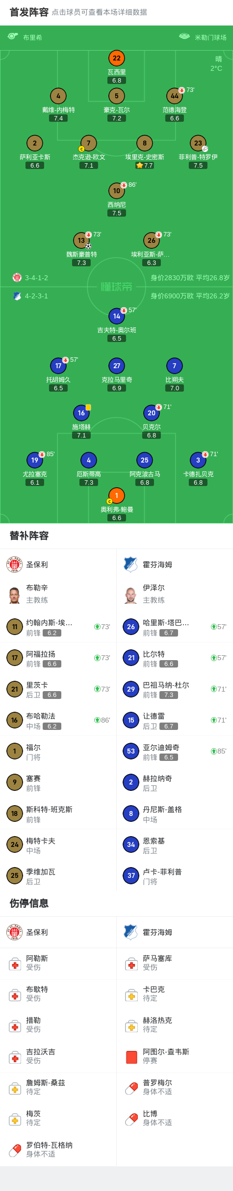 圣保利1-0霍芬海姆终结6轮不胜,魏斯豪普特制胜,客队0射正