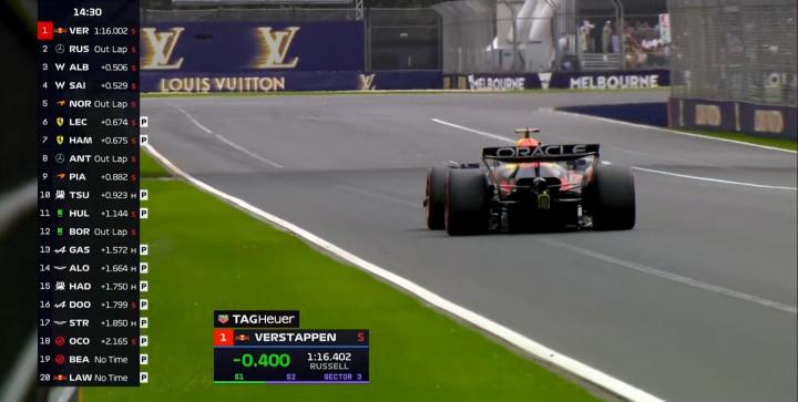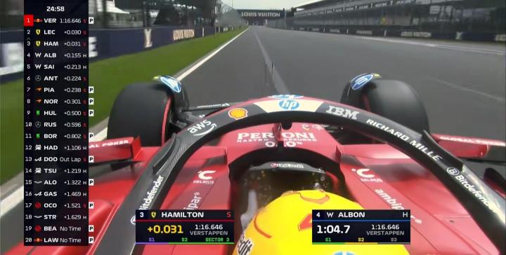 大家陆续开始进行排位赛模拟,维斯塔潘暂时领跑,两台法拉利的差距仅在0.001秒!
