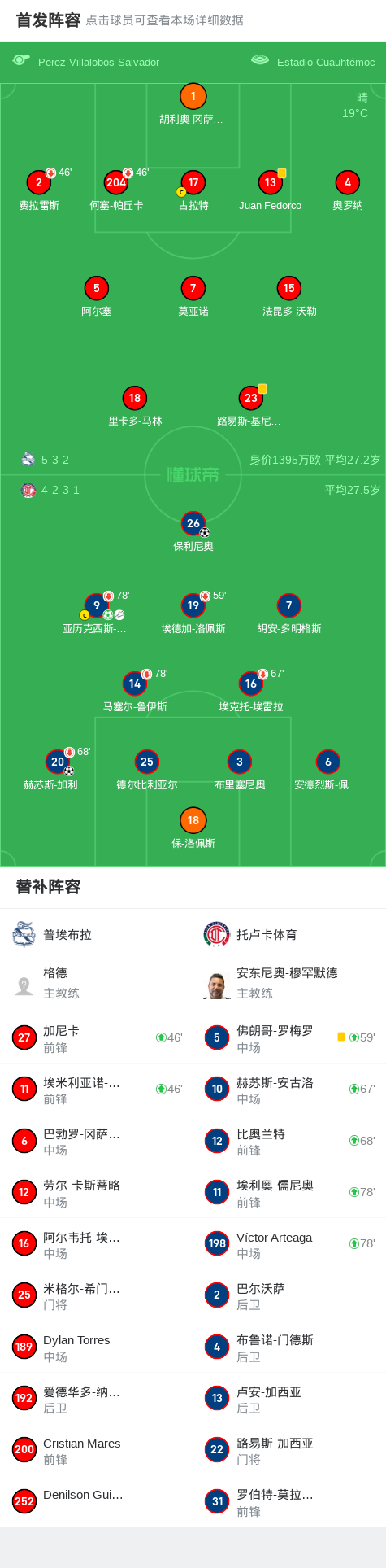 托卢卡体育3-0大胜普埃布拉,亚历克西斯-维加1传1射,保利尼奥破门