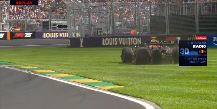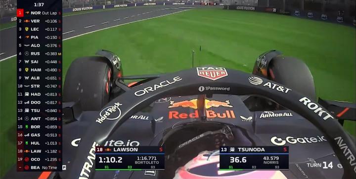 劳森在自己的最后一个飞驰圈的14号弯驶上草地,遗憾止步Q1!