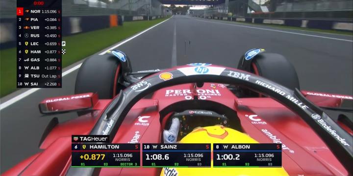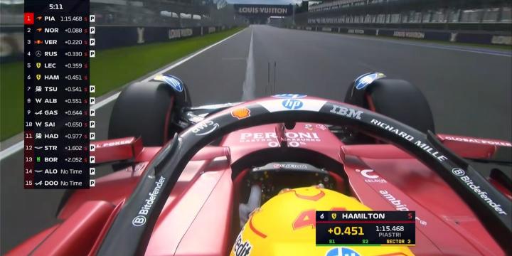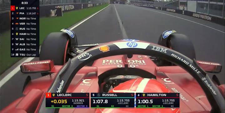 两台法拉利再刷一圈,勒克莱尔未能提升排名,汉密尔顿来到第6!
