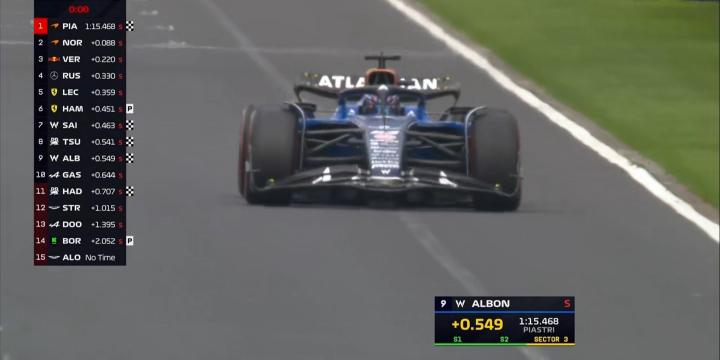 阿尔本最后一圈刷新成绩,力压两台法拉利上升到第5!