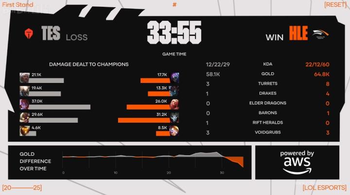 第33分钟,HLE下路推进一波拿下比赛,3-0横扫TES晋级决赛。