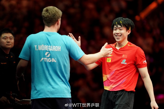 王楚钦(中国)3-0莫雷加德(瑞典)【11-7,11-6,11-4】