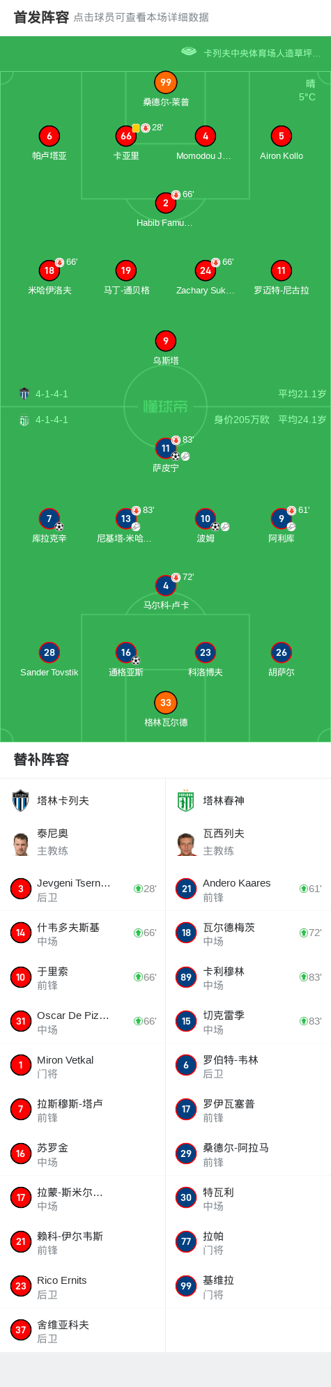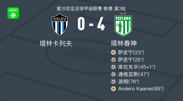 第25分钟,塔林春神球员阿利库助攻萨皮宁打入一球。