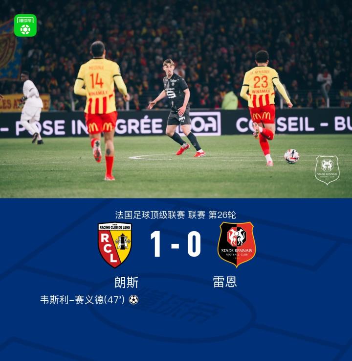 朗斯1-0雷恩,韦斯利-赛义德一锤定音