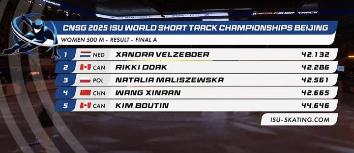 短道速滑世锦赛女子500米:王欣然第4,荷兰选手夺冠我的靴子里面有蛇 @懂球帝2025-03-16 17:10北京时间3月16日,北京短道速滑世锦赛进入收官日。女子500米决赛,王欣然获得第四。半决赛,王欣然滑出小组第二晋级。决赛中,王欣然在第4道出发。发枪后,王欣然位列第五,还剩一圈王欣然超越至第四,最终她名列第四。荷兰选手桑德拉-贝尔塞伯夺冠,加拿大选手多克摘银,波兰选手纳塔利娅-马利谢夫斯卡获得铜牌。展开更多