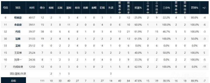 浙江稠州金租盖比-约克38分6板8助,达米安-琼斯19分6板2助,余嘉豪15分11板2助;