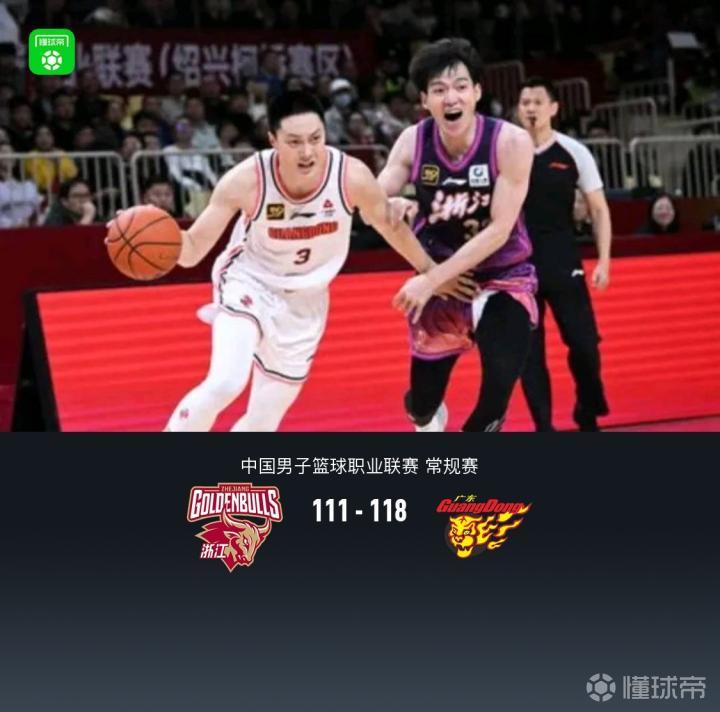 广东118-111力克浙江,任骏飞21+6,约克空砍38+6+8