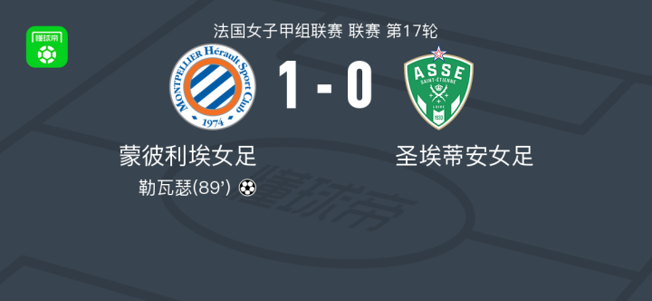 蒙彼利埃女足1-0圣埃蒂安女足,勒瓦瑟绝杀