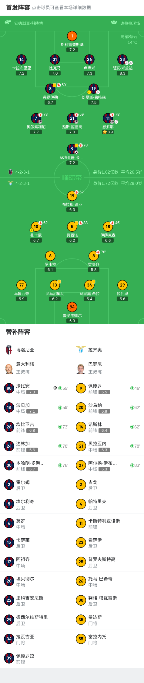 博洛尼亚5-0拉齐奥,恩多耶、法比安建功,延斯-厄德高破门