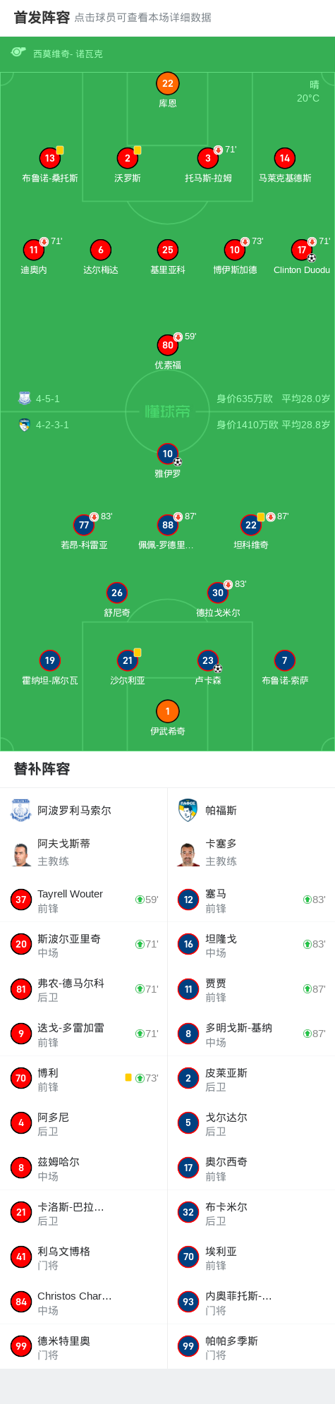 帕福斯2-1阿波罗利马索尔,卢卡森、雅伊罗破门