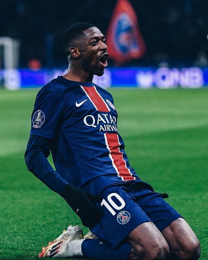 此役主场对阵马赛,首发出战的登贝莱在比赛第17分钟破门为巴黎圣日耳曼取得1-0领先。