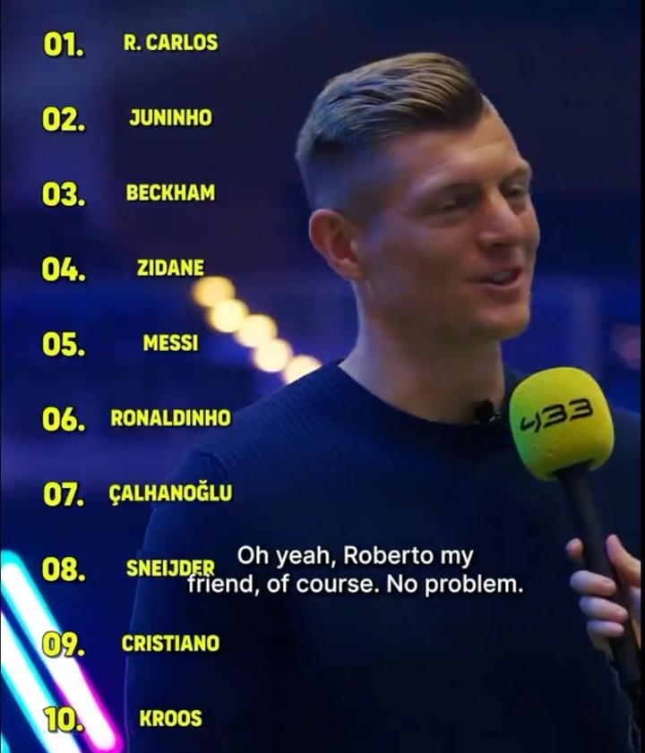 克罗斯盲排任意球高手:卡洛斯居首,梅西第5,C罗第9Aphelios19 @懂球帝2025-03-18 10:13近日在做客一档节目时,托尼-克罗斯盲排了自己心目中的任意球高手,他将自己排在了第10的位置上,卡洛斯第1,梅西第5,C罗第9。克罗斯盲排任意球高手排名1.卡洛斯2.儒尼尼奥3.贝克汉姆4.齐达内5.梅西6.罗纳尔迪尼奥7.恰尔汗奥卢8.斯内德9.C罗10.克罗斯展开更多