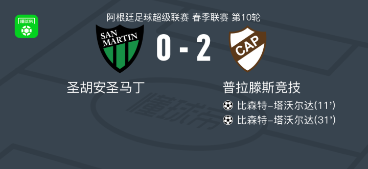 北京时间3月18日,阿根廷足球超级联赛春季联赛第10轮,圣胡安圣马丁坐镇主场迎战普拉滕斯竞技。比赛中,普拉滕斯竞技的比森特-塔沃尔达表现出色,他凭借队友的两次巧妙助攻完成梅开二度,为球队奠定了胜局。最终,圣胡安圣马丁以0-2不敌普拉滕斯竞技。