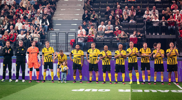 作为拜仁慕尼黑 125 周年庆典的一部分,“贝肯鲍尔杯”传奇赛完美落幕,参赛的豪门传奇队包括拜仁慕尼黑、多特蒙德、皇家马德里、AC米兰、斯图加特、阿贾克斯。六支球队被分为 A 组和 B 组。A 组包括拜仁慕尼黑、皇家马德里和阿贾克斯,B 组包括多特蒙德、AC 米兰和斯图加特。小组赛每场比赛 10 分钟,晋级半决赛将进行两个半场的比赛,每个半场 6 分钟。