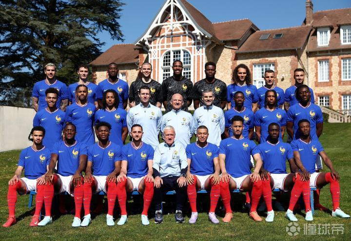 在法国国家队的合影中,球队主教练德尚位居C位,重返国家队的球队队长姆巴佩在他身旁。