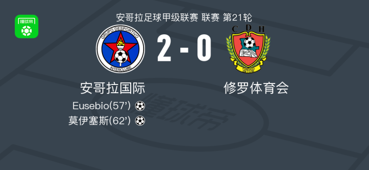 安哥拉国际2-0修罗体育会,Eusebio建功,莫伊塞斯锁定胜局