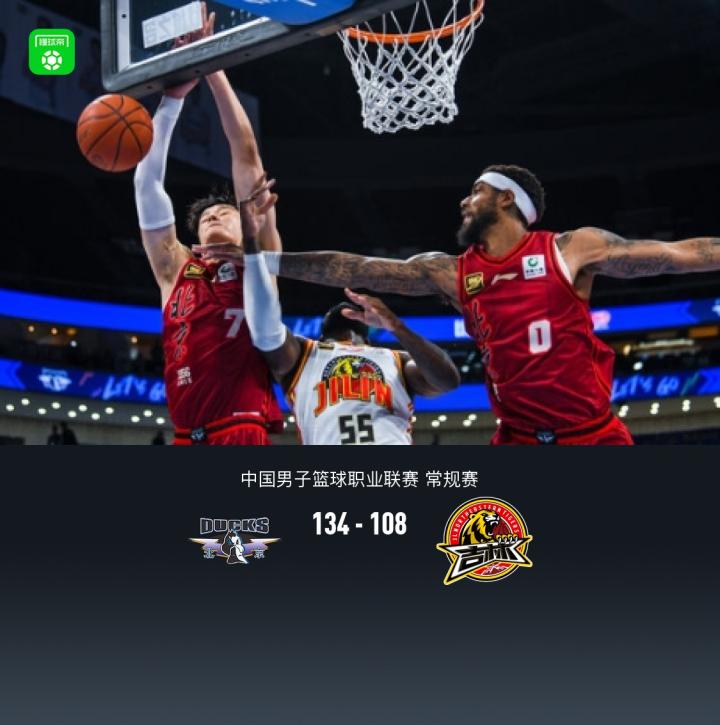 第四节北京曾凡博拿下16分,吉林多米尼克-琼斯拿下9分,最终北京134-108战胜吉林