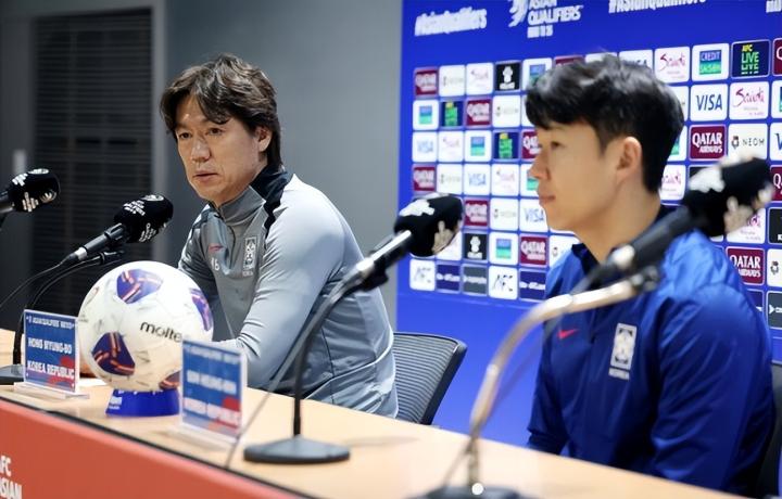 明晚,2026美加墨世界杯亚洲区预选赛第三轮将全面打响。在韩国高阳,B组排名第一的韩国队将在主场高阳综合运动场迎战阿曼队,本场比赛前,韩国队以14分雄踞B组榜首,只要取得两连胜,基本上将确保拿到小组出线资格。本场比赛前,韩国队主帅洪明甫带队长孙兴慜出席了赛前的新闻发布会,谈及这场比赛,洪明甫的思绪全在这里——那就是如何确保胜利!