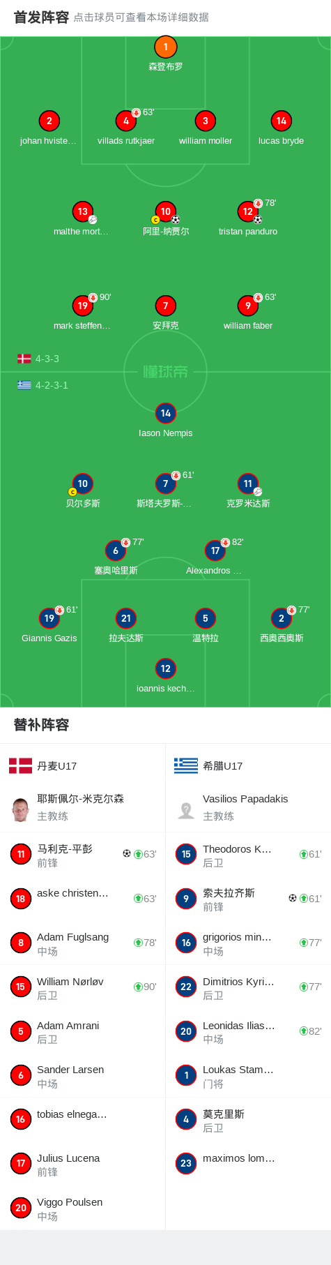 丹麦U17 3-1希腊U17,马利克-平彭、阿里-纳贾尔破门
