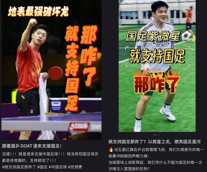 这不,今天在翻小红书的时候,有不少其他圈子的朋友也都来为国足加油。有支持马龙的乒乓球球迷,有热爱音乐的歌迷。不过,对于这些支持国足的朋友,很多网友并不买账,觉得他们有蹭流量之嫌。可是,表达自己的热爱真的有错么?