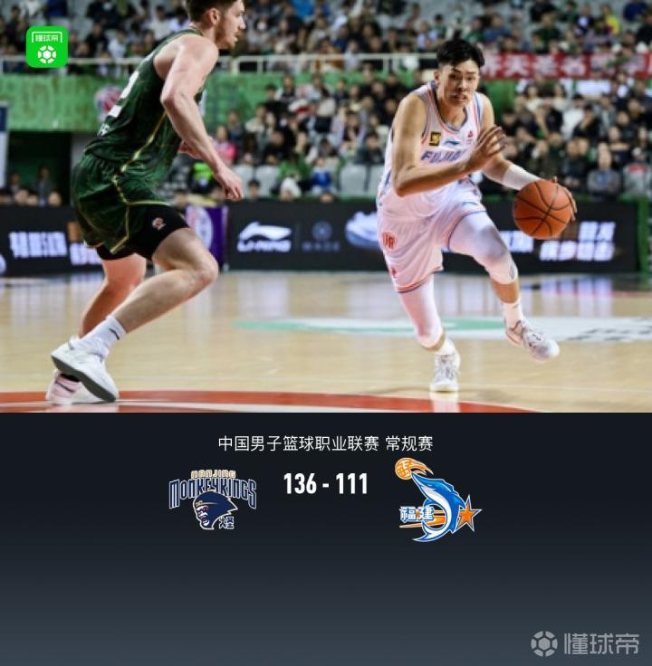 第四节同曦郭昊文拿下6分,福建邹阳拿下15分,最终同曦136-111战胜福建