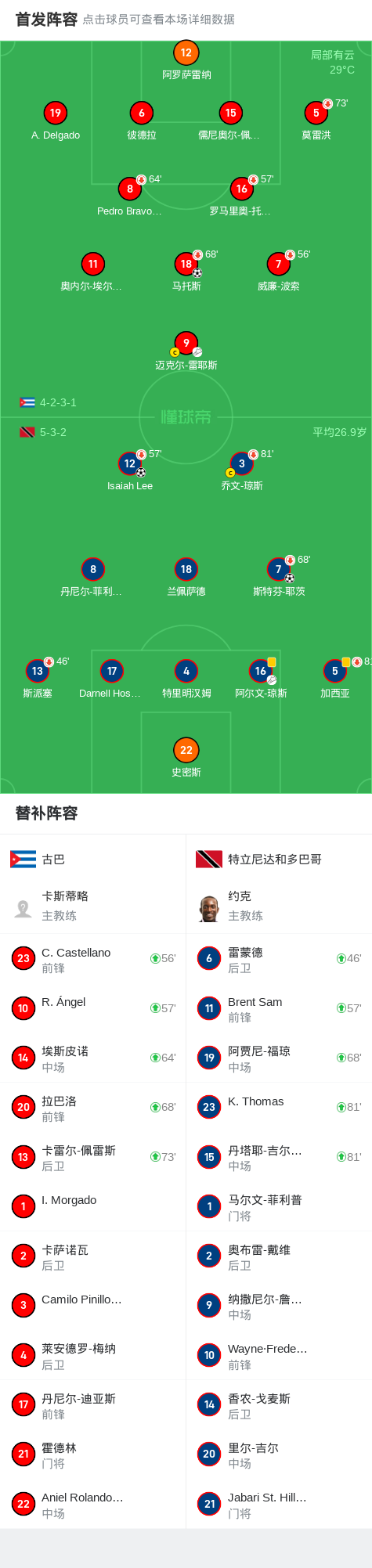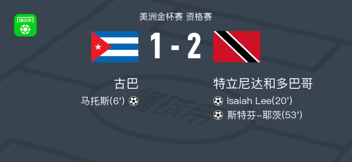 特立尼达和多巴哥2-1逆转古巴,斯特芬-耶茨、Isaiah Lee破门