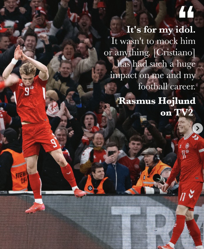 曼联晒出霍伊伦在C罗面前Siu庆祝照片:向伟大球员致敬❤来杯冰可罗2025-03-22 08:03在欧国联A级联赛1/4决赛首回合的较量中,丹麦队以1-0的比分战胜了葡萄牙队。比赛中,霍伊伦在破门得分后,模仿了C罗标志性的Siu庆祝动作。随后,曼联官方在社交媒体上晒出了霍伊伦在C罗面前做出这一庆祝动作的照片,并写道:“向伟大球员致敬。”此外,曼联还转载了霍伊伦对于这一庆祝动作的解释:“我这么做是为了向我的偶像表达敬意,绝无冒犯之意。C罗对我和我的足球生涯有着深远的影响。”展开更多