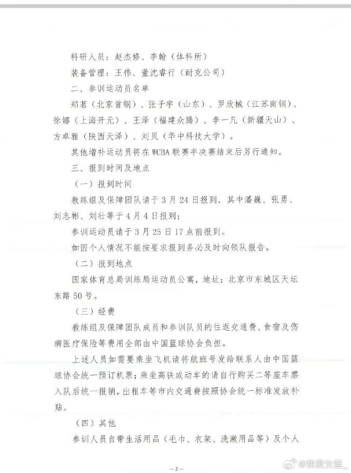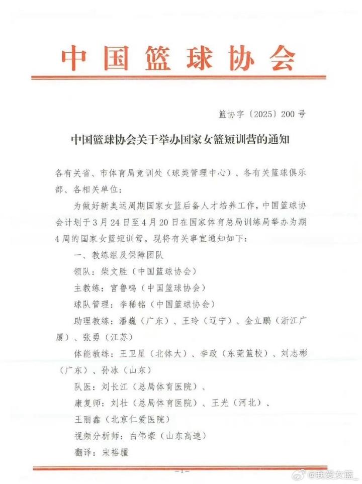 除了首批公布的8名球员外,其他增补运动员将在WCBA联赛半决赛结束后另行通知。中国篮协计划于3月24日至4月20日举办为期四周的国家女篮短训营。